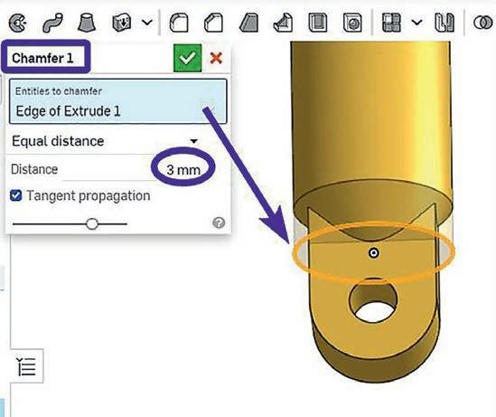 Step P7 – Use the Chamfer tool as indicated in 53