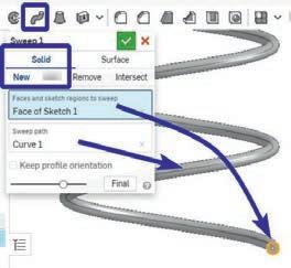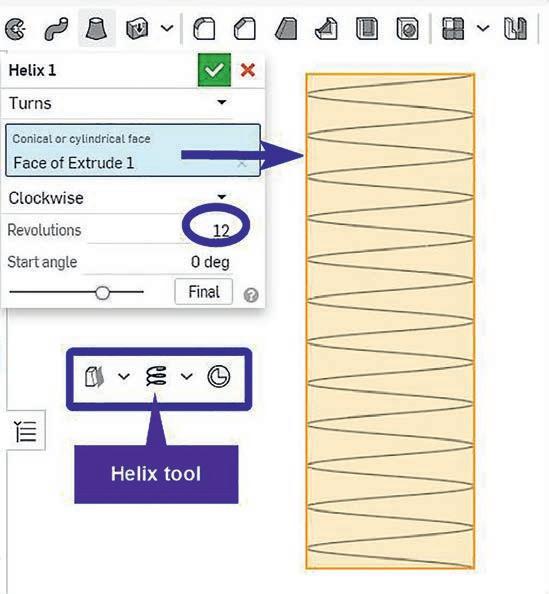 Step S3 – Use the Helix tool around the auxiliary cylinder face There are several parameters to defne the heli I chose the confguration of 55 www youtube com/watch?v= jNx9sOcBU8&t=89s