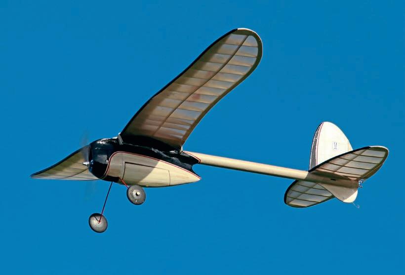 The tailplane’s rear dowel is caught by a swinging piano wire clip to allow for easy removal.