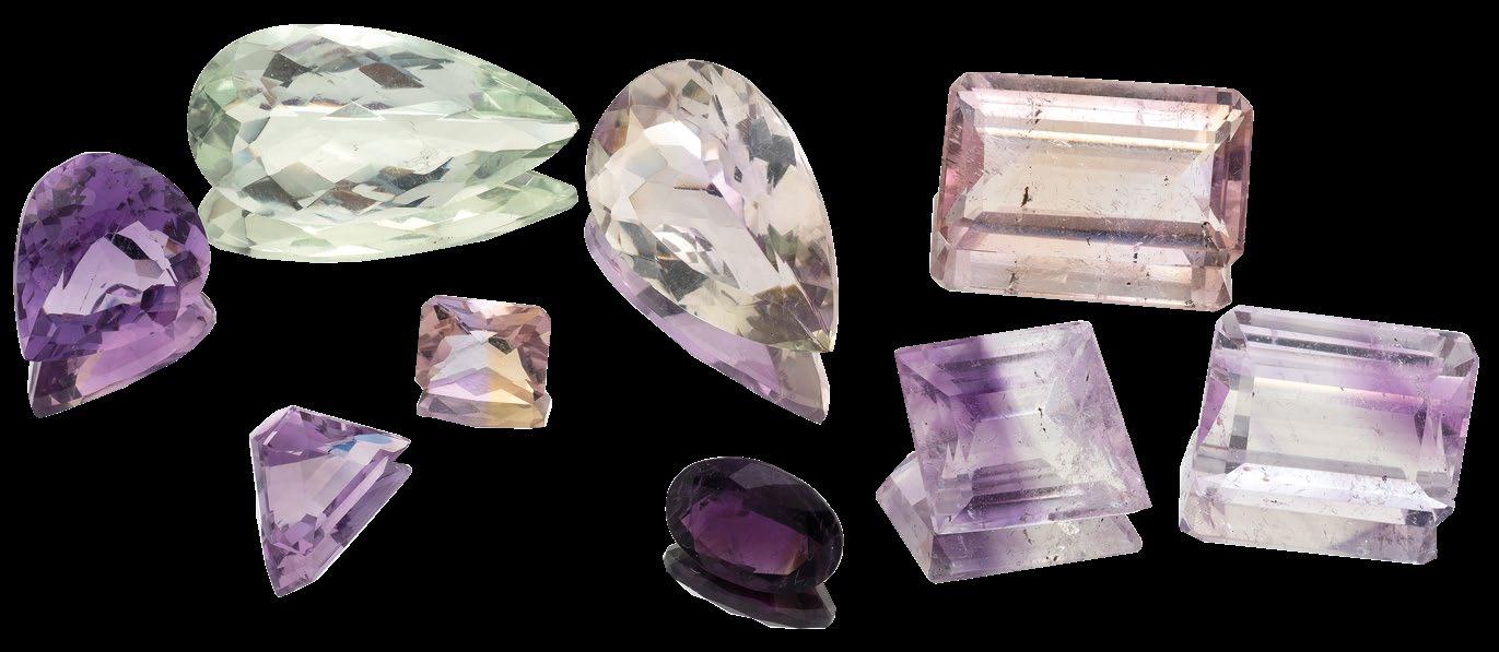 9 Amatistas y prasiolitas distintos cortes ~135.30 ct