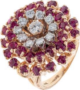 ANILLO CON RUBÍ Y DIAMANTES EN PLATINO