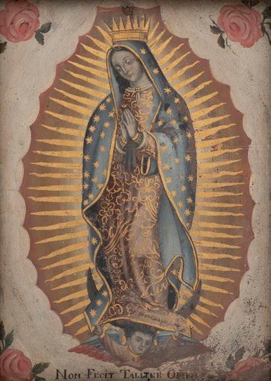 En cuanto a nuestras selecciones de artes decorativas, arte religioso y mobiliario, le compartimos una colección curada con finas piezas provenientes de Francia (lotes 200-203), un excepcional exvoto a san Juan Nepomuceno (lote 44), un precioso arcón de Choapan (lote 242), un impresionante sable de oficial de infantería francés (lote 274) y un elegante sombrero charro de gala (lote 268).