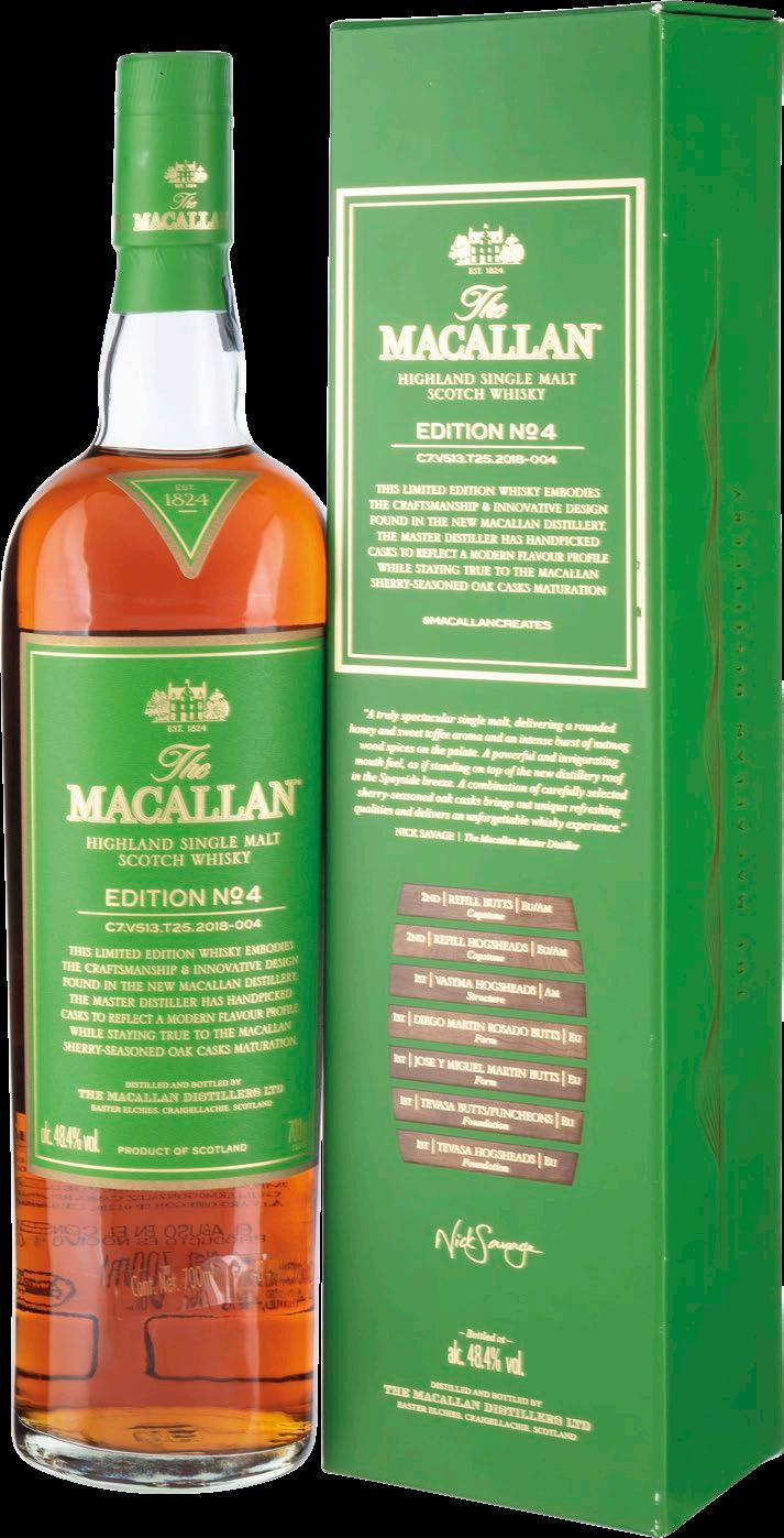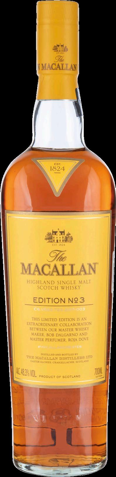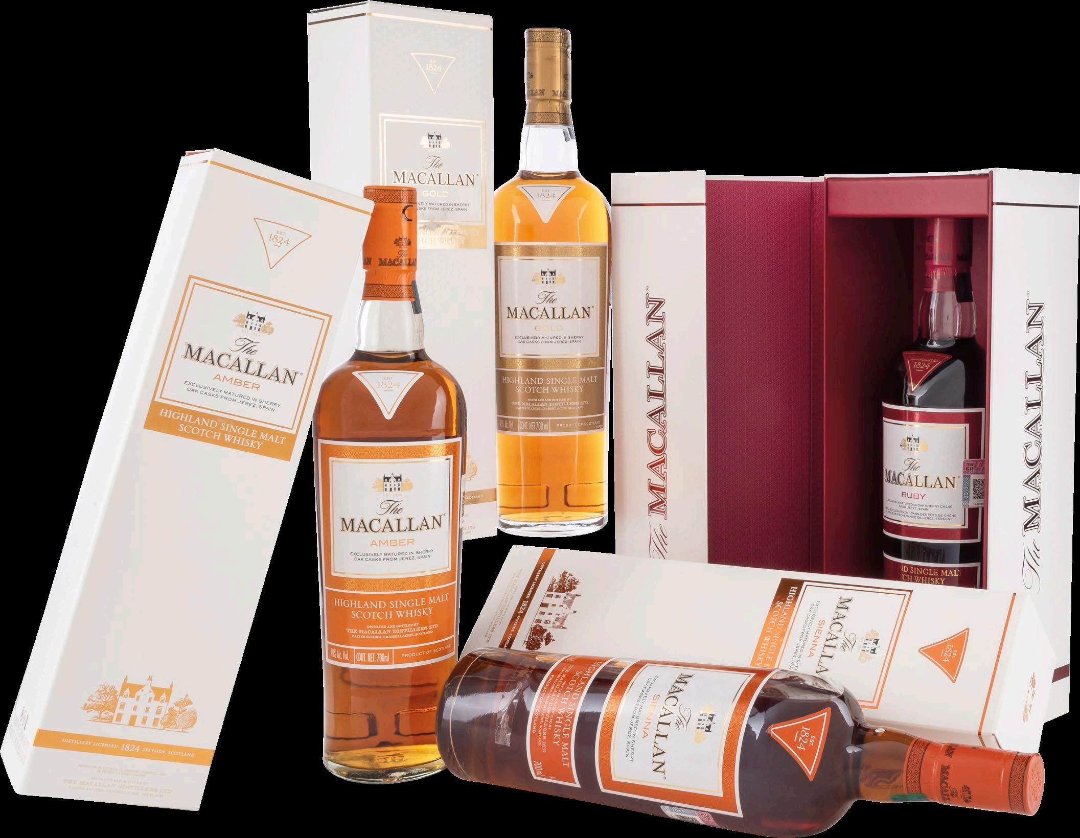 En la sección de destilados, contamos con grandes botellas de “The Macallan”, una de las primeras destilerías con licencia legal en Escocia, fundada por el agruicultor de cebada Alexander Reid. “The Macallan” ha ganado la reputación de ser uno de los whiskies de pura malta, líderes en el mundo, cuyos ingredientes naturales son combinados con métodos tradicionales y artesanales.