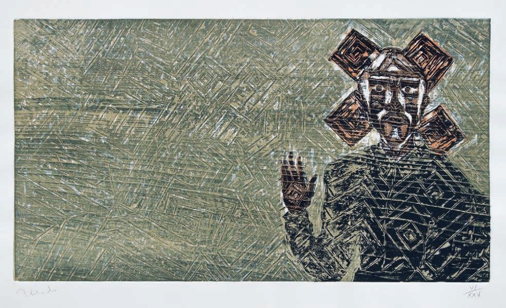 Xilografía intervenida y entelada sin número de tiraje