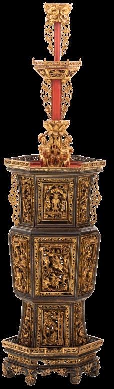 Decorado con motivos orgánicos, calados y remate a manera de flor