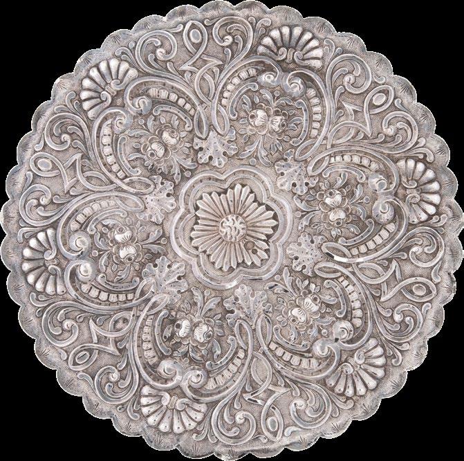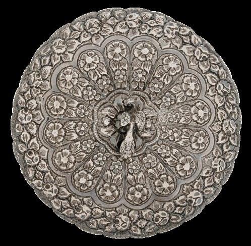 Elaborados en plata repujada con lunas circulares Decorados con motivos vegetales y remates a manera de pavorreal