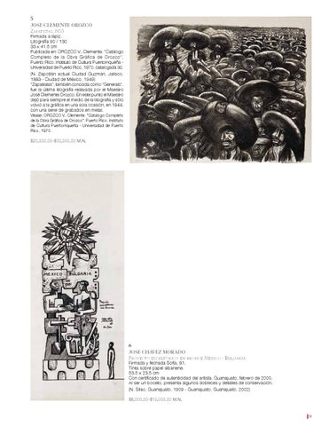5 JOSÉ CLEMENTE OROZCO Zapatistas, 1935 Firmada a lápiz. Litografía 90 / 130 33 x 41.5 cm Publicada en: OROZCO V., Clemente. "Catálogo Completo de la Obra Gráfica de Orozco". Puerto Rico. Instituto de Cultura Puertorriqueña Universidad de Puerto Rico, 1970. catalogada 30. (N. Zapotlán actual Ciudad Guzmán, Jalisco, 1883 - Ciudad de México, 1949) "Zapatistas", también conocida como "Generals", fue la última litografía realizada por el Maestro José Clemente Orozco. En este punto el Maestro dejó para siempre el medio de la litografía y sólo volvió a la gráfica en una sola ocasión, en 1944, con una serie de grabados en metal. Véase: OROZCO V., Clemente. "Catalogo Completo de la Obra Gráfica de Orozco". Puerto Rico. Instituto de Cultura Puertorriqueña - Universidad de Puerto Rico, 1970.