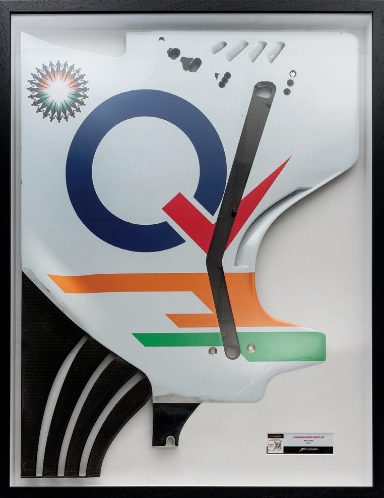 A su alrededor, se presenta una selección exclusiva de objetos originales de escuderías como Mercedes AMG Petronas, BMW Sauber y Force India, obras de arte inspiradas en pilotos como Fernando Alonso y esculturas de diseño mexicano que reinterpretan el universo automovilístico.