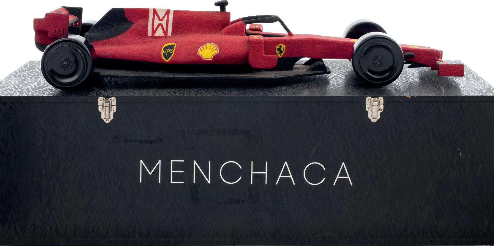La pieza fusiona la velocidad y precisión del automovilismo con la riqueza artesanal de la cultura wixárika. Cada fragmento de chaquira ha sido colocado a mano, transformando el diseño aerodinámico del Ferrari F1 en un lienzo tridimensional que celebra la tradición y la innovación. Esta obra del reconocido Menchaca Studio es un ejemplo emblemático de cómo el arte contemporáneo mexicano reinterpreta los íconos de la modernidad global desde una perspectiva profundamente identitaria y simbólica.