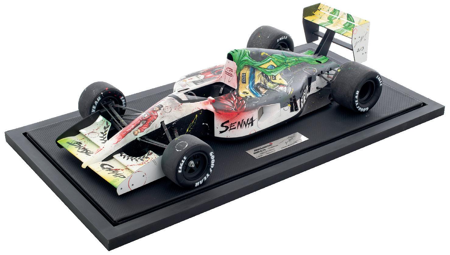 Con certificado de autenticidad “Armori Steele AS-00369”, holograma Piloto brasileño, tres veces campeón mundial de Fórmula 1 con la escudería Marlboro-McLaren-Honda. En la temporada de 1993 consiguió un segundo puesto en Sudáfrica y ganó en Brasil y en el GP de Europa (Donington Park). En 1994 firma para correr para Williams en un “Williams-Renault FW16”. Fallece el 1 de mayo de 1994 en un grave accidente en el Gran Premio de San Marin. www.biografiasyvidas.com/biografia/s/senna.htm
