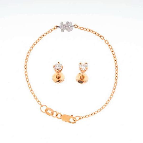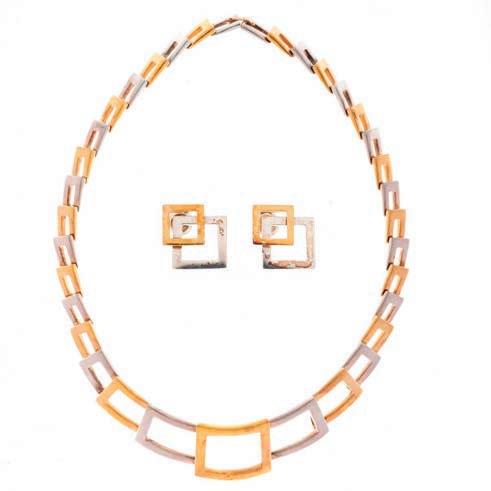 Collar y pulsera tipo italiano con diamantes en oro amarillo de 14k.