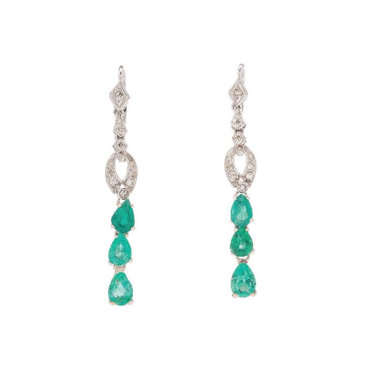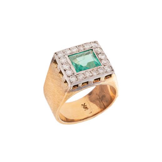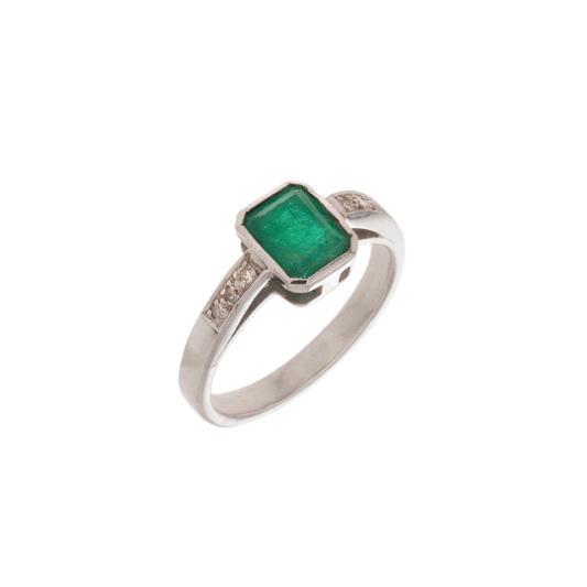Anillo vintage con esmeralda y diamantes en oro blanco de 10k.