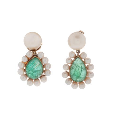 Par de aretes vintage con medias perlas y diamantes en oro al paladio.