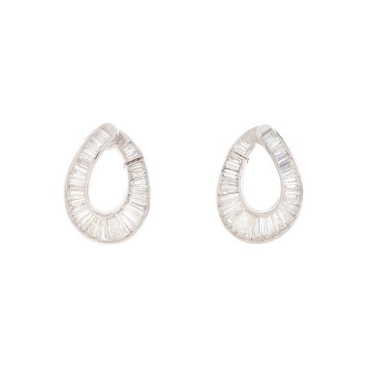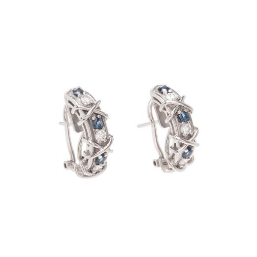 Par de aretes con zafiros y diamantes en oro al paladio.