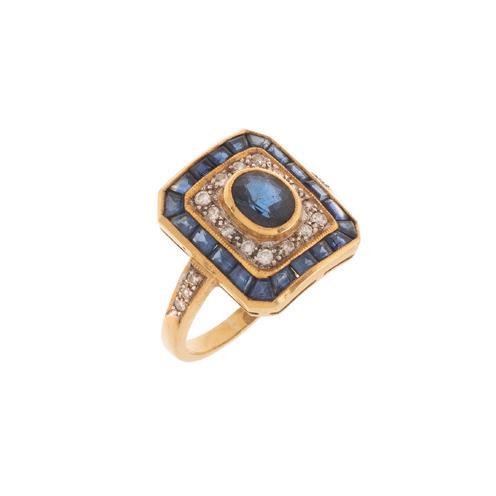 Anillo vintage con zafiro y diamantes en plata paladio.