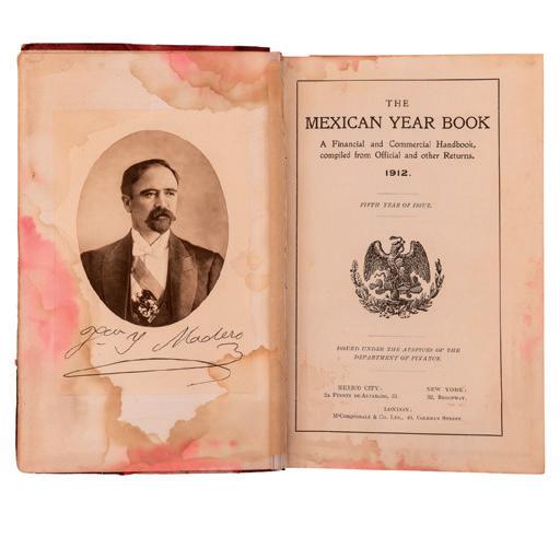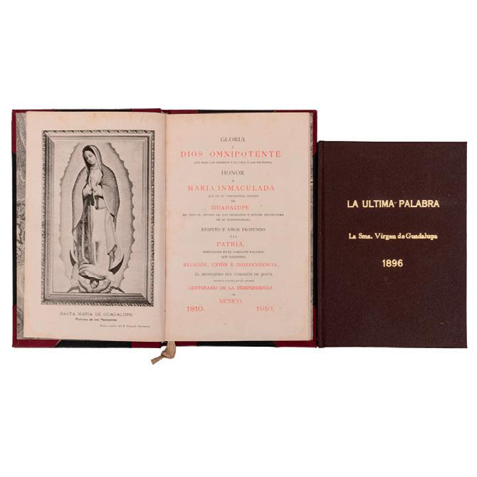 Continuando el recorrido por la subasta presentamos uno de los lotes que genera gran emoción: “El Libro Rojo” (lote 260), el título es una alegoría al derramamiento de sangre que se ha realizado a través de la historia de México. Representando a mártires como: Moctezuma II, Cuauhtémoc, Martín Cortés, Pedro de Alvarado, la familia Carbajal, la familia Dongo, Hidalgo, Allende, Morelos, Guerrero, Los Mártires de Tacubaya y Maximiliano. Representadas por un gran trabajo litográfico a partir de los dibujos de Primitivo Miranda, litografiados por Hernández e Iriarte, impresos por Díaz de León y White.