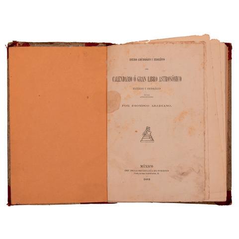 Abadiano, Dionisio. Estudio Arqueológico y Jeroglífico del Calendario o Gran Libro Astronómico, Histórico y Cronológico de los Antiguos Indios.