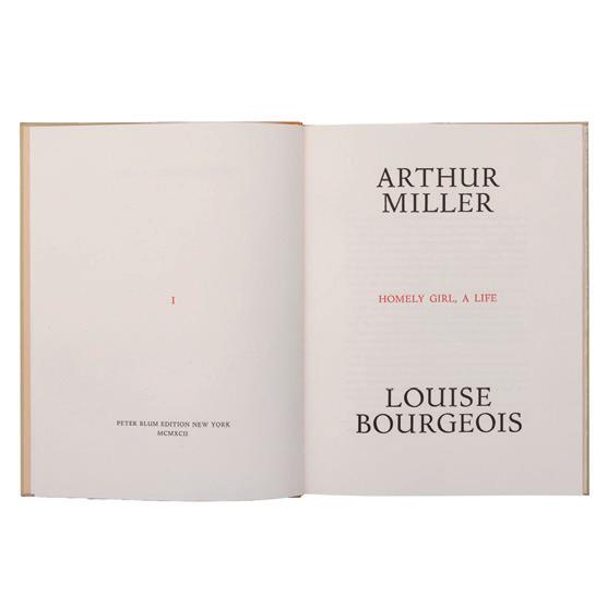 En el mismo tenor destaca “Homely Girl” (lote 98), una colaboración del dramaturgo estadounidense Arthur Miller con la artista Louise Bourgeois quien ilustra el cuento de Miller. Uno de los tomos presenta una serie de delicados grabados de plantas que florecen y brotan, que sugieren un erotismo latente. El otro está ilustrado con extraños estudios oftalmológicos de ojos humanos más grandes que la vida, desconcertantes en su potente impacto visual.