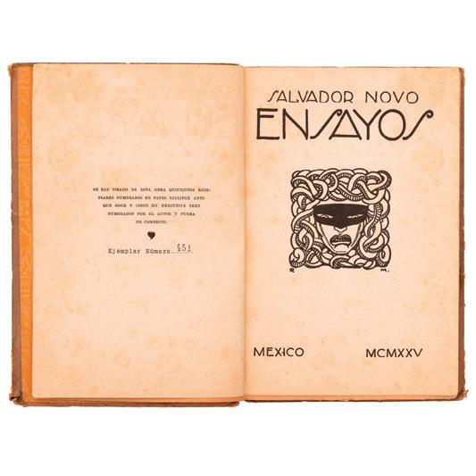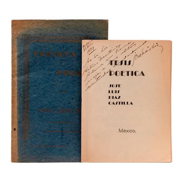 Incluimos una selección de libros de literatura, algunos firmados por los autores (lotes 230 a 268), destacando obras del estridentismo: de Manuel Maples Arce “Poemas Interdictos (lote 248), de Salvador Gallardo “El Pentagrama Eléctrico” (lote 240), de Germán List Arzubide “El Viajero en el Vértice” (lote 246), todos en primera edición. Asimismo la segunda edición de las “Fábulas del Pensador Mexicano” de José Joaquín Fernández de Lizardi con la particularidad de tener entres sus páginas 40 grabados en bistre por José Mariano Torreblanca.