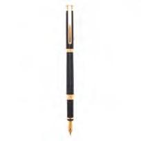 Artículos de escritura pluma fuente y bolígrafo Dupont. Cuerpo en acero acabado color chocolate y plata .925. Punto en oro amarillo de 18k.