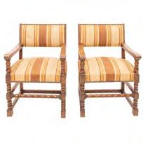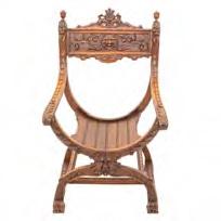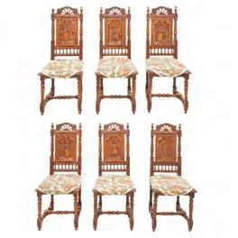 Elaboradas en madera de roble Respaldos semiabiertos, asientos con recubrimiento de tela, chambrana en "H y soportes tipo carrete Decoradas con elementos vegetales, arquitectónicos, a manera de timón, escenas campiranas y molduras Detalles de conservación, de estructura, faltantes, polilla y marcas de uso $11,000-18,000