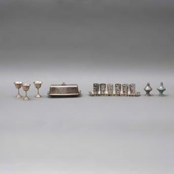 Elaborados en plata baja y marfilina Consta de: esprejo, cepillo, calzador y otros 27 cm (mayor)