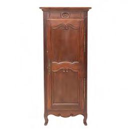 Elaborado en madera de nogal Con 3 puertas, una con espejo biselado y soportes tipo carrete Decorado con elementos vegetales, arquitectónicos y molduras Detalles de conservación, de estructura, polilla y marcas de uso 213 x 184 x 60 cm