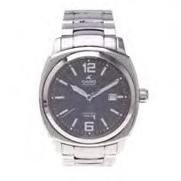 Carátula color negro con índices de barras y números arábigos. Pulso de acero.