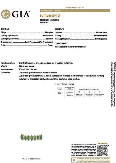 4. Las clasificaciones de peso, claridad y color de todas las gemas se establecieron en rango aproximado por estar montadas.