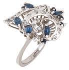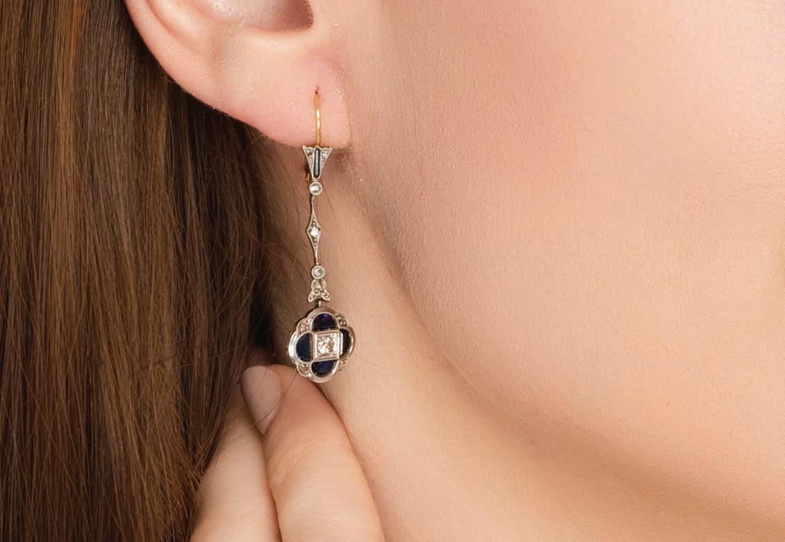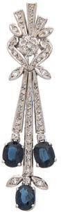 Entre ellas resalta el lote 62. PAR DE ARETES CON ZAFIROS Y DIAMANTES EN ORO BLANCO DE 18K, donde una flor de lirio en tonos azules da origen a una cascada de zafiros verdes. Una pieza única, luminosa y vibrante, que combina armoniosamente color, movimiento y elegancia.