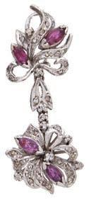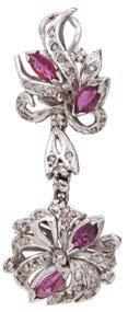 5• PAR DE ARETES CON RUBÍES Y DIAMANTES