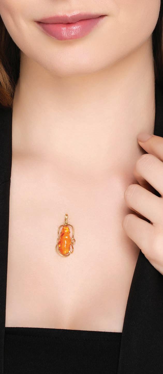 El ópalo de fuego, con sus intensos destellos anaranjados y rojizos, destaca por su brillo cálido y envolvente. Montado en oro amarillo de 18K, esta pieza resalta por su belleza y distinción, aportando un toque de luz y color único.