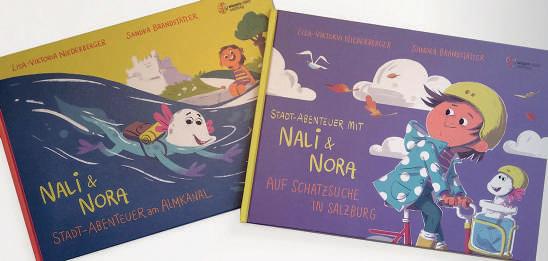 Lisa-Viktoria Niederberger lassen darin das Axolotl Nali und dessen Freundin Nora viele Abenteuer in der Stadt Salzburg erleben: Gemeinsam gehen sie auf Entdeckungsreise am und im Almkanal,