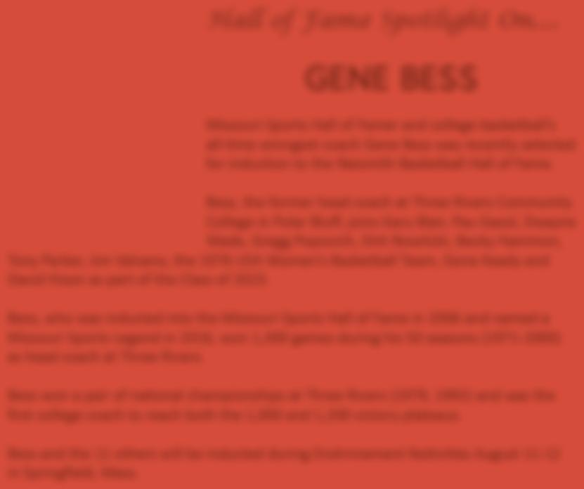 Missouri Sports Hall of Famer and college basketball’s all- me winngest coach Gene Bess was recently selected for induc on to the Naismith Basketball Hall of Fame.