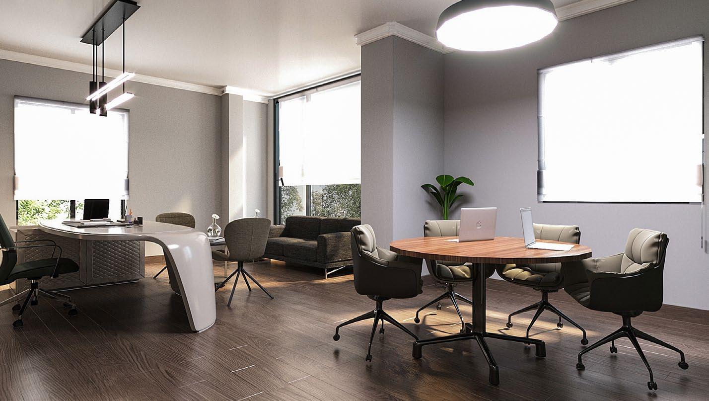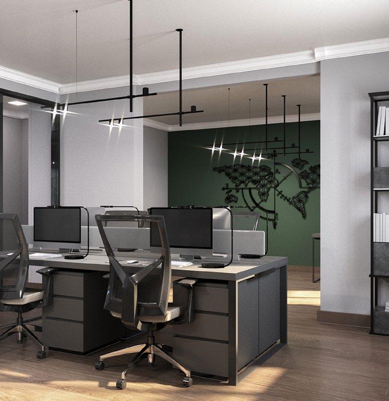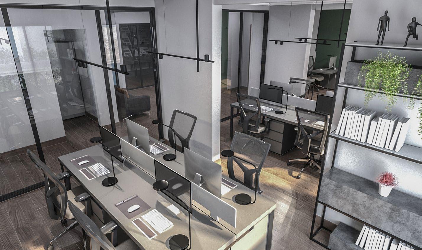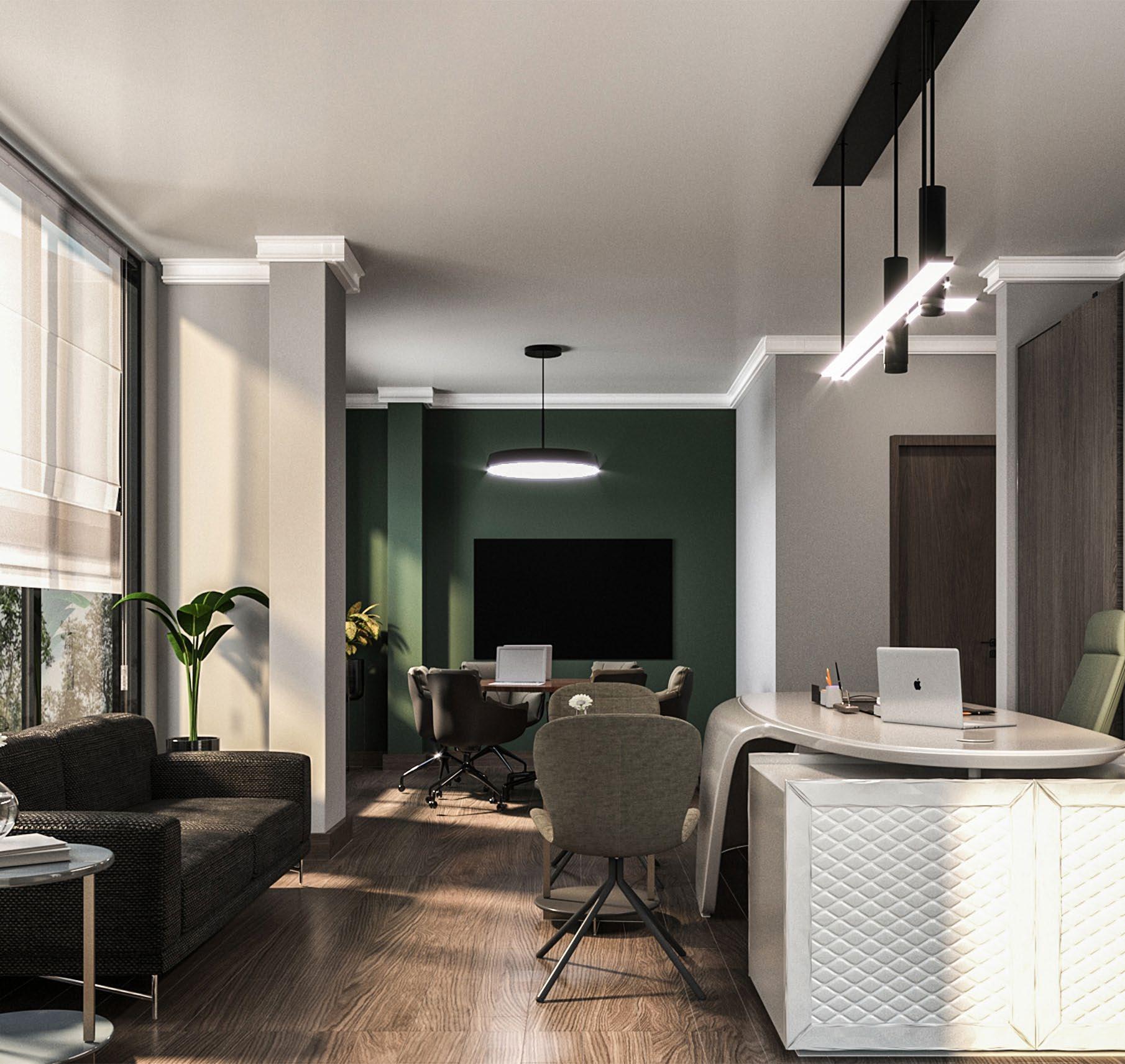 Le projet concerne la conception et l’aménagement d’un espace de bureaux de 210 m². L’objectif est d’optimiser le confort des collaborateurs tout en créant une ambiance élégante et dynamique. La palette de couleurs vert olive, gris foncé et gris clair apporte une atmosphère à la fois apaisante et sophistiquée, idéale pour un environnement de travail productif.