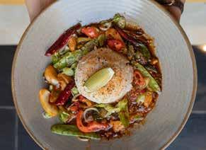 This salad is a beautiful balance of textures and flavours. Crisp greens, tender chicken, and a drizzle of sesame dressing bring a delightful harmony of fresh and nutty notes to your table. Chef Gabriel balances the earthiness of sesame with a slight citrusy kick, making the dish refreshing and unique.