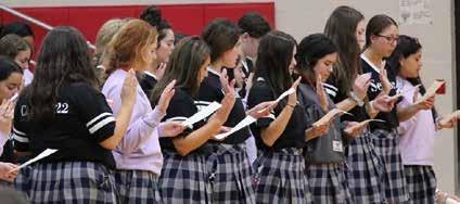 Maggie Nolan ‘22, pictured with twin sister Rosie Nolan ‘22, received the Sister Brian Costello Scholarship Award and gave a reflection at the Baccalaureate Mass. Maggie is attending Marquette University and attended Christ the King. Thea Bueno ‘22, Valedictorian, had the overall highest GPA in the Class of 2022. Thea gave her final farewell and well wishes to her class in her valedic torian address. Thea is attending the University of Illinois Urbana-Champaign and attended Cardinal Bernadin. Abigail Poppish ‘22, Salutatorian, introduced Ms. Kelsey O’Brien, the Faculty Speaker. Abigail is attending The University of Alabama and attended St. John Fisher. The graduating seniors elected Cece Antonietti ‘22 as the student speaker. Cece is attending the University of Kansas and attended Christ the King.