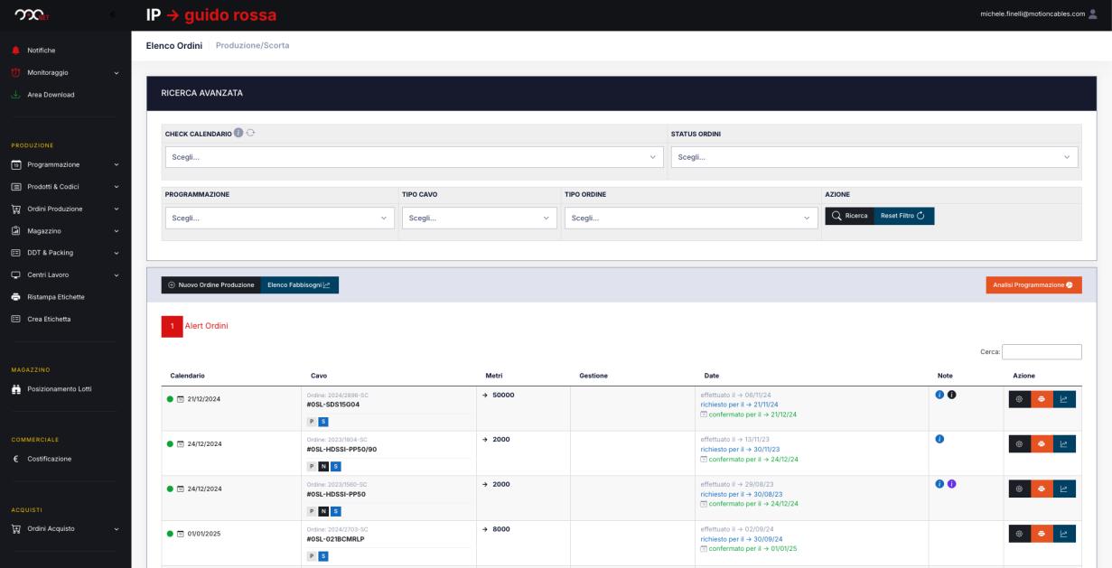 MOTIONCABLES has developed a proprietary EPR system, fully integrated, that brings together all the production areas:
