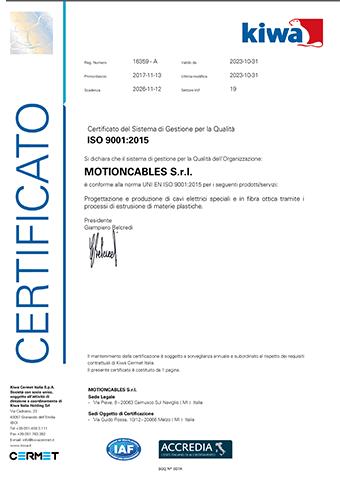 A further confirmation that quality is written in capital letters at MOTIONCABLES is defined by our certifications, the point of arrival of a process we started far beyond certifications themselves.