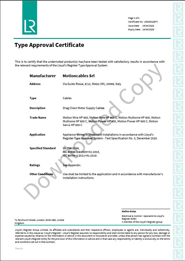 MOTIONCABLES has been approved by Lloyd Register. This give us the option to produce and distribute cables for naval application.