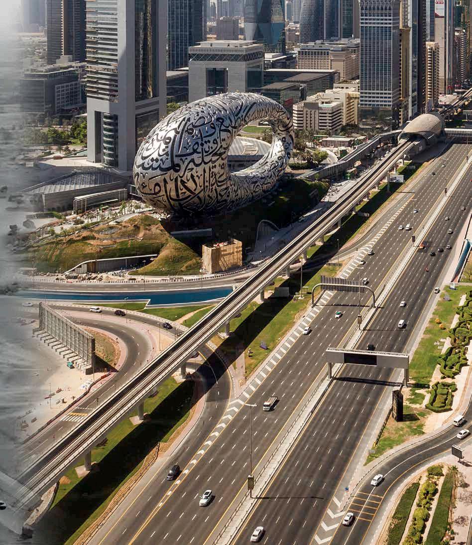 Sheikh Zayed Road: Stretching 558.44 km, the meeting point of all roads leading to the 7 Emirates of the UAE.