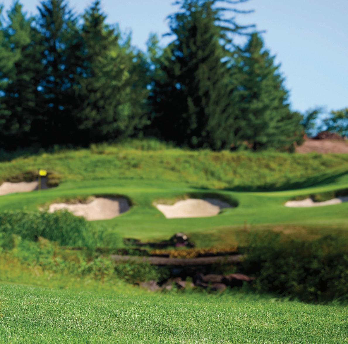 tour pros seem to always miss in the right spots, but how? Most of the time they aim away from trouble and curve their shots toward the risky spots, being careful not to over-curve them. If the pin is tucked on the left side (previous spread), pros know they don’t want to miss left, on the short side, so they aim at the middle of the green and work the ball toward the hole. Amateurs often go directly at the pin, leading to short-sided misses. Make your target bigger by aiming at the safe side of the green. If you curve your shot toward the hole—great shot! If not, you’re still on the green.