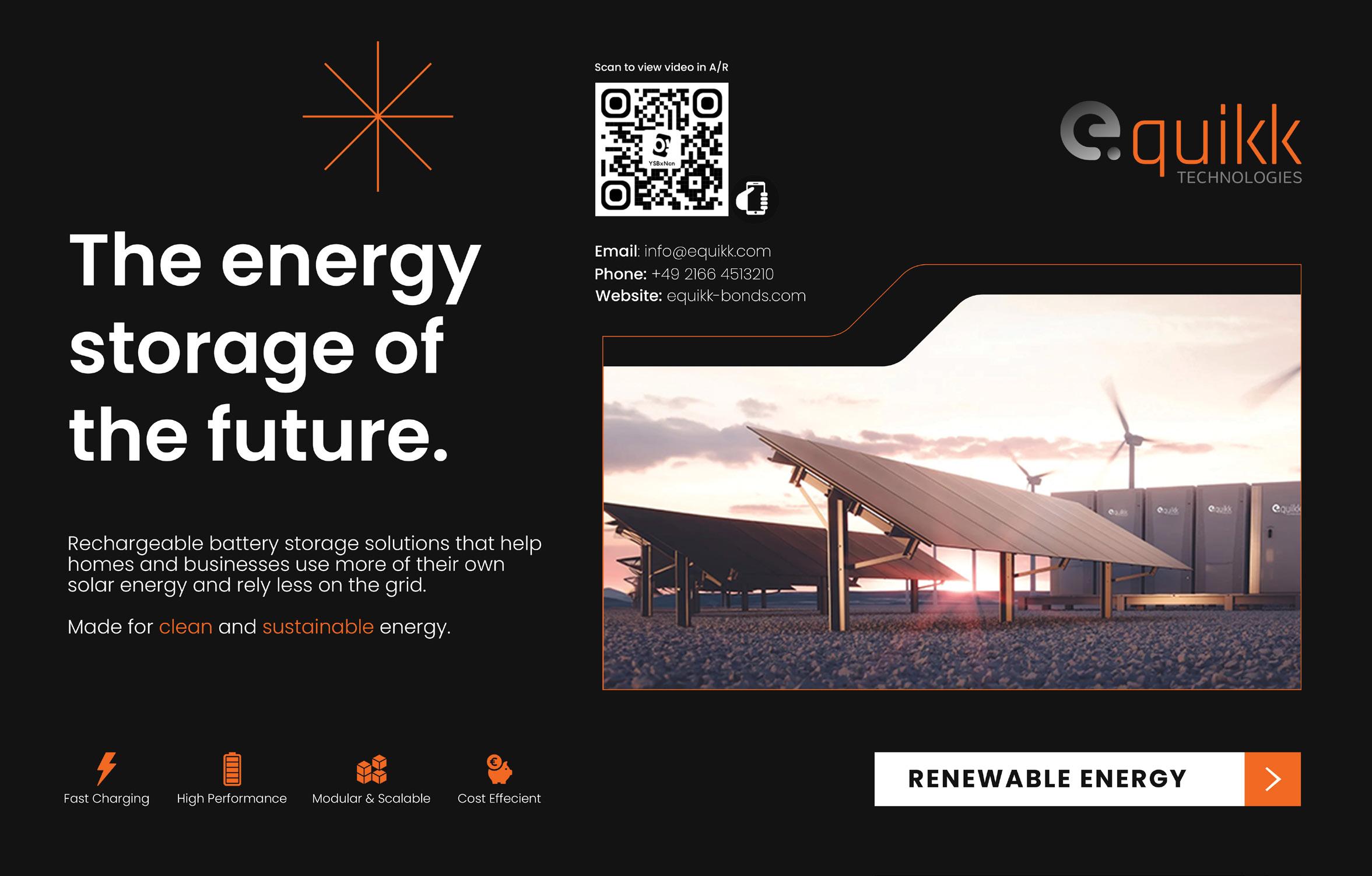 At the core of E.Quikk’s offering is a robust, fast-charging and thermally efficient battery solution that can be connected to any alternative or conventional energy source, including solar. “E.Quikk is not just about backup power,” explains Thomas Krämer , CEO of E.Quikk. “It is about enabling households and businesses to generate, store and manage their own energy in line with international climate and energy strategies.”