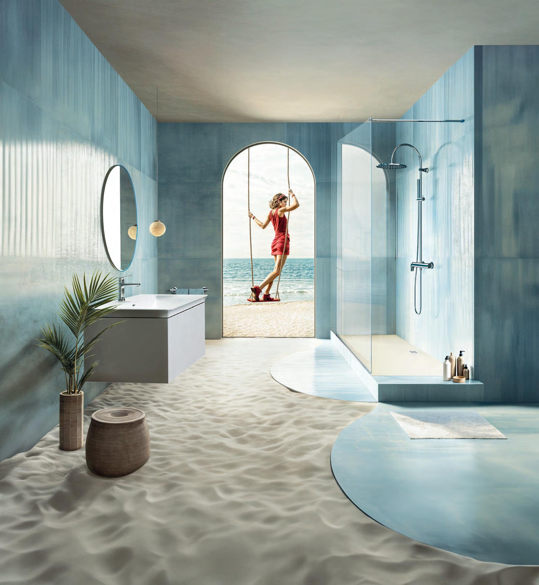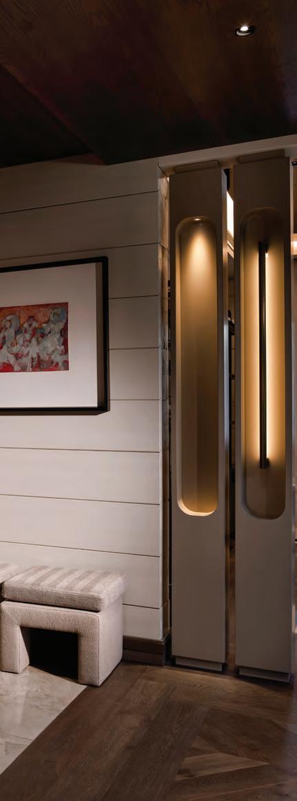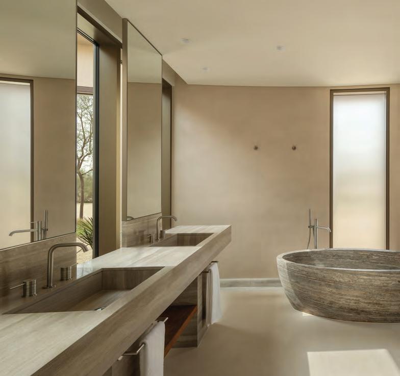 “an intimate wellness retreat.” This in turn has led to rising demand for more spacious layouts and the incorporation of natural and sustainable materials to enhance feelings of comfort and closeness to nature. At the same time, increased focus is being given to organisation in the bathroom, to create spa-like, clutterfree areas that are both visually and sensorially soothing. Saccal notes how lighting is also playing an important role in creating this new space for wellness. “There is a growing preference for dimmable lighting and multiple lighting options, allowing homeowners to adjust the ambiance throughout the day and night to suit their mood and needs,” she adds.
