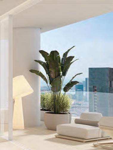 As it reaches its peak, the building gracefully blends into the sky. This fading profile reveals a collection of expansive terraces serving a selection of sky villas and multilevel penthouses, each with their own pool.