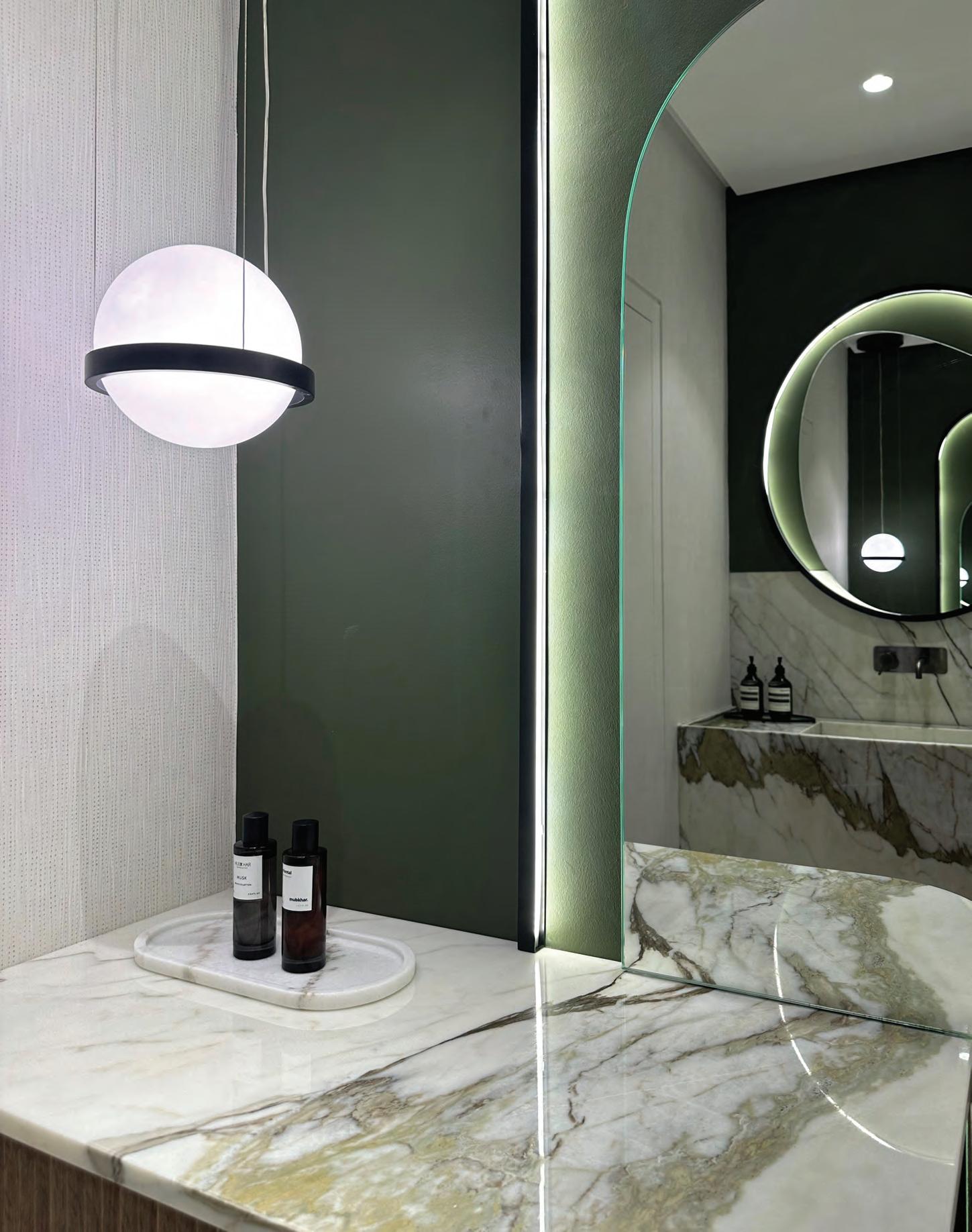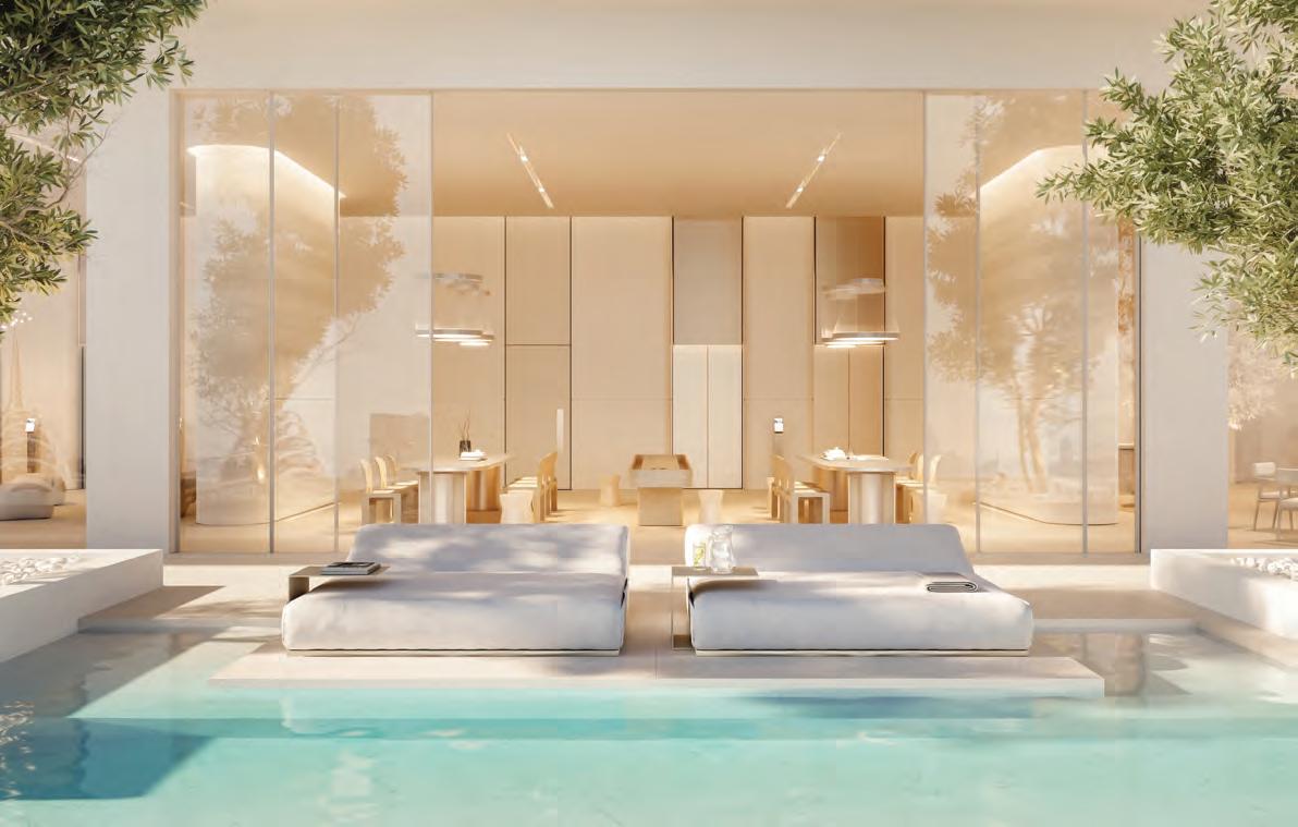 that are transforming into intimate personal spaces, like a private spa, where you take care of yourself using a variety of therapies on offer, like a rain shower, sound experiences, a mini=sauna and a Jacuzzi bathtub.” Cortese has been working on a private high-end private residence on the Palm with a large bathroom made in natural stone and incorporating natural lighting. It features a freestanding bathtub, outdoor Jacuzzi and large shower with a rain system that she designed with support of the high-end Italian sanitaryware Gessi. As she emphasises, such a design goes beyond the functionality of a traditional bathroom: it becomes a place where the individual can retreat from the outside world and practice the self-care required.