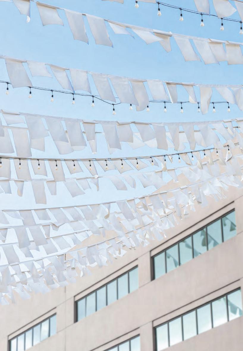 way. Commissioned to Czech-American artist Natalja Kent by Beacon Capital Partners, who acquired the building on which the piece sits, the façade-scale installation stands out and creates a landmark open to interpretation by passers-by. “This artwork is a public homage to the delightful and healing power of light, colour, movement and play,” Kent says. “Abstraction has the bold power of inviting new ways to see and interpret the work, depending on the viewer’s perspectives.”