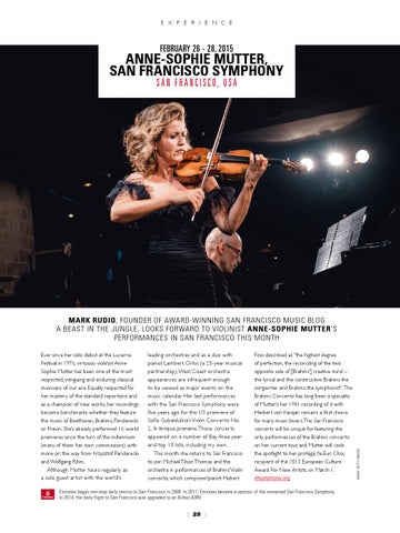 MARK RUDIO, FOUNDER OF AWARD-WINNING SAN FRANCISCO MUSIC BLOG A BEAST IN THE JUNGLE, LOOKS FORWARD TO VIOLINIST ANNE-SOPHIE MUTTER’S PERFORMANCES IN SAN FRANCISCO THIS MONTH