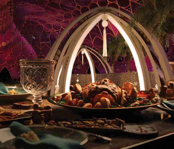 Taking over the stunning SkyDome, the decadent iftar at Dusit Thani Abu Dhabi features over 20 stations, with international dishes, local flavours, and pop-ups from the hotel’s Michelinselected Namak and popular Thai restaurant Benjarong. Taste your way through the signature flavours from across the Arab world, with signature and unique dishes from Levant, Maghrebi and Egyptian cuisines. Live music and oud performances add a welcome touch of traditionality to the ambience.