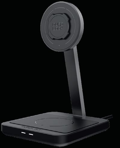 Provides fast charge for compatible devices. Sleek design with a black machined aluminium base and soft-touch grip pad and a reusable nano-suction adhesive base.